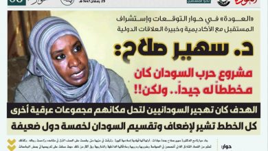 الهدف من الحرب كان تهجير الشعب السوداني لتحل مكانه مجموعات عرقية أخرى كل الخطط تشير لإضعاف وتقسيم السودان لخمسة دول…