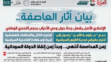 حصاد الإسبوع تقرير تحليلي /علم الدين عمر حكومة الأمل تعيد ضبط البوصلة.. حضور مدني يحصن الشرعية ويكسر العزلة.. حرب تفكيك…