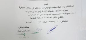 أصدار محافظ اللاذقية تعميما بمنع الموظفات من وضع المكياج نهائياً خلال الدوام الرسمي في اللاذقية بسوريا وقال التعميم أن المخالفة تضع الموظفة أمام القانون والمحاسبة.