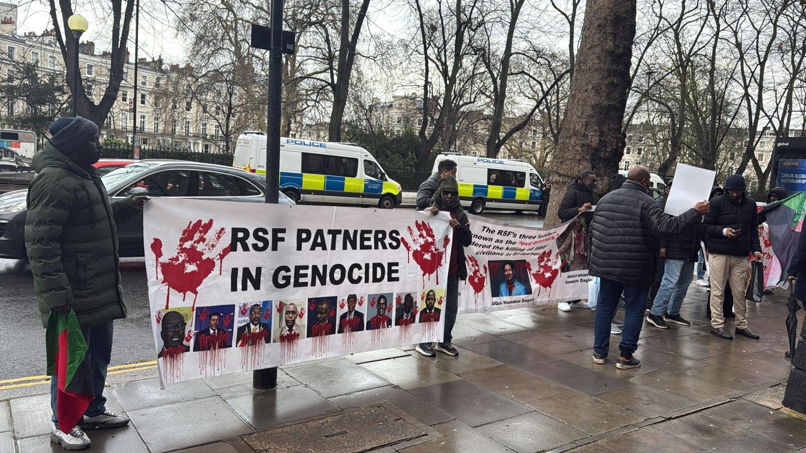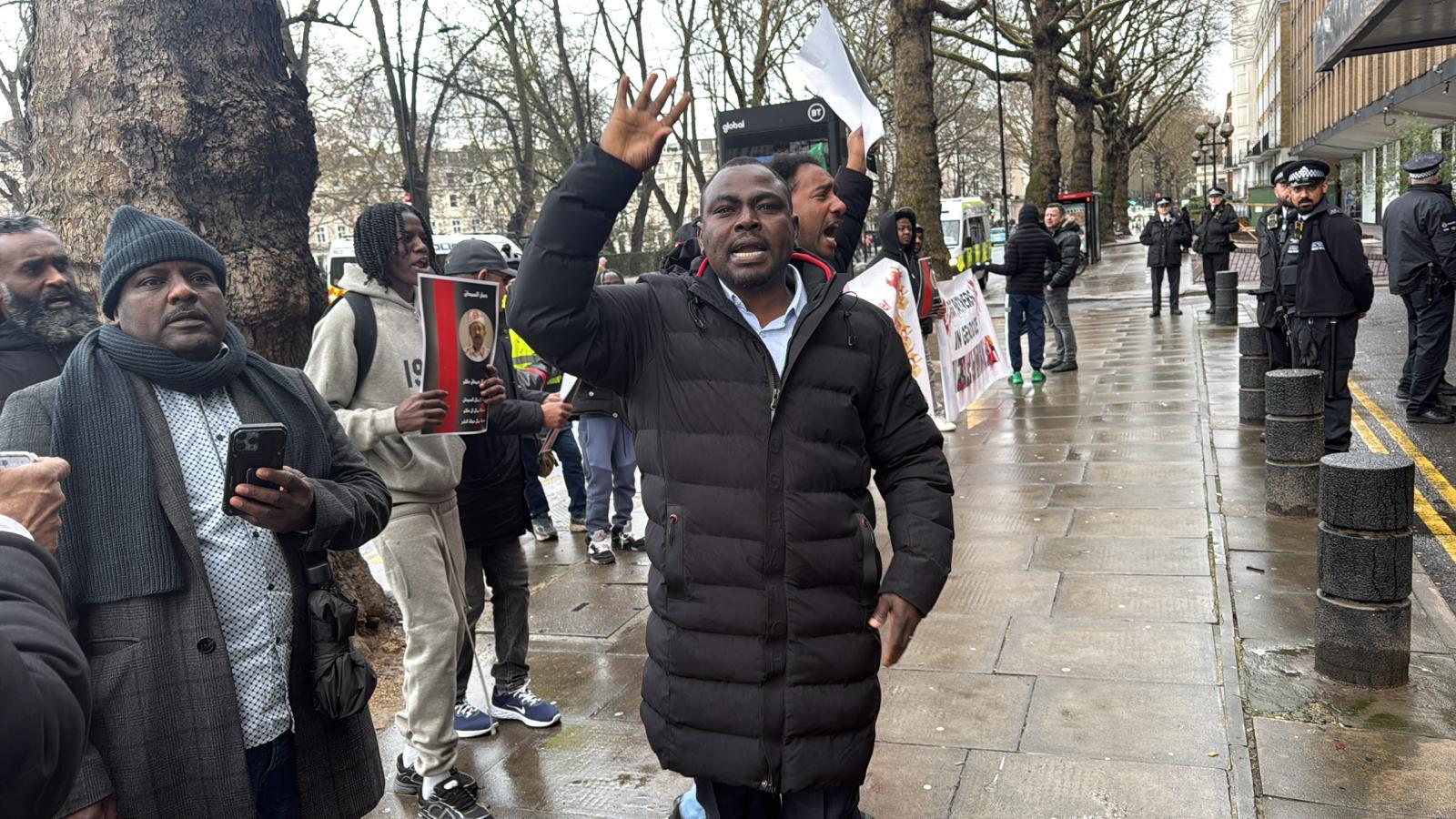 شهد وسط العاصمة البريطانية لندن، مساء اليوم، توترًا أمنيًا عقب محاصرة مئات المتظاهرين السودانيين للفندق الذي يُقيم فيه عبد الله حمدوك، حيث كان من المقرر انعقاد ندوة سياسية في وقت لاحق من المساء.. وبحسب شهود عيان، تجمع المتظاهرون أمام مقر الإقامة رغم هطول الامطار، مرددين هتافات رافضة للندوة، ومطالبين إدارة الفندق بإلغائها، متهمين حمدوك – وفق تعبيرهم – بالارتباط بأجندات خارجية، لا سيما دولة الإمارات، وهي اتهامات لم يصدر بشأنها أي تعليق رسمي من حمدوك أو الجهات المعنية حتى الآن.