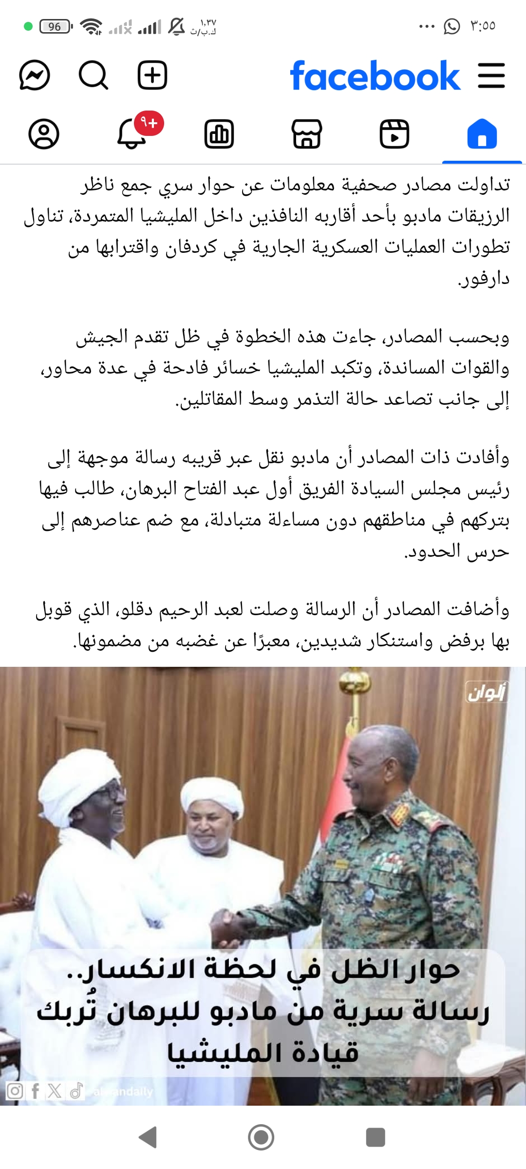 وجد الخبر الذي انفردت به (العودة) عن رسائل ناظر الرزيقات المدعو محمود موسى مادبو، الى بريد الجنرال البرهان عن تركهم في مناطقهم وذهاب أولادهم إلى حرس الحدود لتحقيق السلام ورد المليشي عبد الرحيم دلقو على الرسالة، وجد الخبر ردود أفعال واسعة واتخذت بعض المنابر (العودة) كمصدر مهم للاخبار.