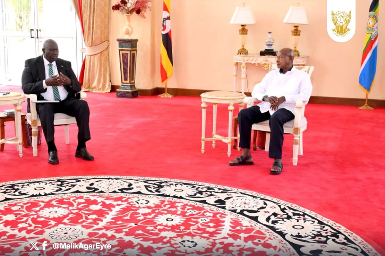 التقيت ظهر اليوم بالرئيس الأوغندي يوري كاقوتا موسيفيني، وذلك بالقصر الرئاسي بمدينة عنتيبي، بحضور سفير جمهورية السودان لدى أوغندا، أحمد إبراهيم جردة، والملحق العسكري، والمستشار الفني، والمستشار الدبلوماسي بالسفارة، وهدفت الزيارة إلى مناقشة سبل تعزيز العلاقات الثنائية بين السودان وأوغندا، والجهود المبذولة لتحقيق السلام ووقف الحرب في السودان”.