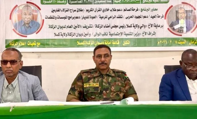 أعلن والي ولاية كسلا المكلف، اللواء ركن معاش الصادق محمد الأزرق، تدشين برنامج شهر رمضان لديوان الزكاة للعام 1447هـ، بكلفة إجمالية بلغت ثلاثة مليارات و750 مليوناً و500 ألف جنيه، مستهدفاً 31 ألفاً و275 أسرة، إلى جانب دعم 110 خلوات قرآنية، تحت شعار «عبادة تتجدد وعطاء يتمدد».
