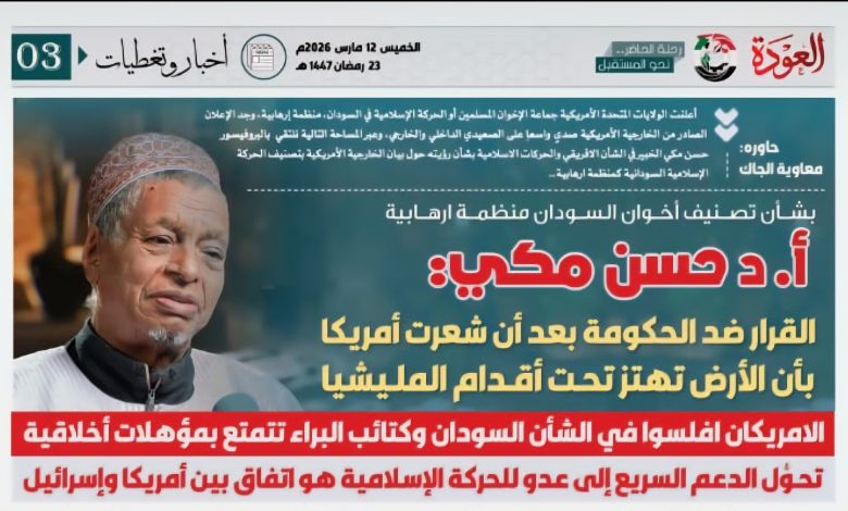 واصل الدكتور حسن مكي افاداته للعودة وقال إن هذا الاجراء كأنه ضد الحكومة السودانية بعد أن شعروا ان الارض تهتز تحت أقدام الدعم السريع والذي لا نختلف ان نشاته كانت بواسطة الحكومة السودانية إلا أن الإنقلاب الذي حدث فيه وتحوله إلى أن يكون عدواً للحركة الإسلامية هو اتفاق بين أمريكا واسرائيل، واستطاعوا ان يخلقوا له دوراً، ولذلك حميدتي في حديثه الاخير كان يعادي في الامريكان وقال لهم لماذا ادخلتمونا في مربع الإطار المرجعي الذي فعلناه لأجلكم، ولذلك حميدتي يرى أن (كروته الداخلية) قد حُرِقت ولم يكن أمامه سوي ان يصبح مثل صمود، والغرب هو الذي يخلق له الدور، وهذا الدور لا يتم إلا عبر ضغط الحكومة الأمريكية على السودان.