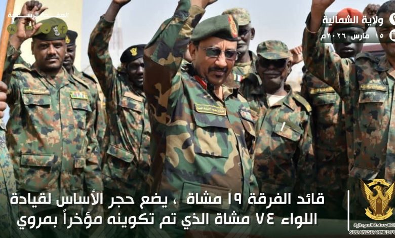 إستكمالا للجاهزية والإستعداد للدفاع عن الوطن شهد اللواء الركن طارق سعود أحمد حسون قائد الفرقة ١٩ مشاة الاحتفال بوضع حجر الأساس لقيادة اللواء ٧٤ مشاة بمدينة مروي .. والذي تم تكوينه حديثاً لتمتد الفرقة ١٩ مشاة بوحداتها المختلفة على كامل محيط الولاية الشمالية وهي تضطلع بمهامها وواجباتها ..