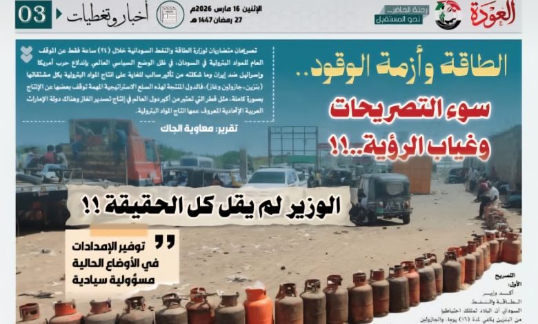 تصريحان كشفا أن حجم الأزمة أكبر من ازمة وقود، ما الطريقة التي تتعامل بها الوزارة ووزيرها حيث يشكلان الأزمة الأكبر ويؤكدان ان القادم سيكون أشد قسوة على الشعب السودان بسبب التخبط الإداري وسوء السياسات خاصة في ظل الظروف المحيطة بالسودان حتى قبل إندلاع حرب إيران لا تتحمل مزيداً من المعاناة في ظل الحرب الداخلية.