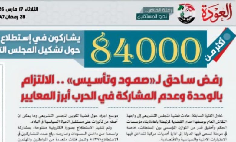أكثر من 84 ألف يشاركون في استطلاع رأي عام حول تشكيل المجلس التشريعي