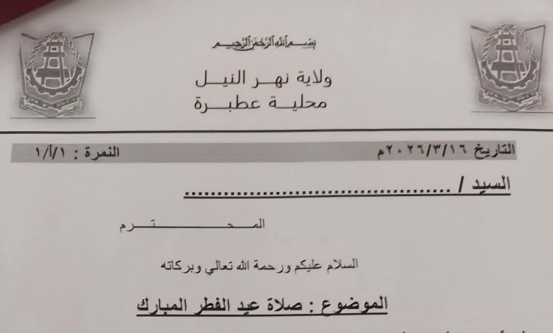 ووجّه المدير التنفيذي لمحلية عطبرة، محمد عباس رحمه، في خطاب رسمي صادر بتاريخ 16 مارس 2026، الجهات المختصة وأئمة المساجد بضرورة الالتزام بتنظيم الشعيرة داخل دور العبادة، بما يضمن سلامة وطمأنينة المصلين.