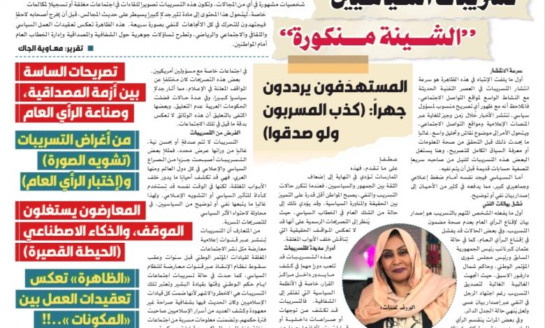 في الحياة السياسية الحديثة أصبحت ظاهرة التسريبات الإعلامية واحدة من أكثر الظواهر حضوراً وتأثيراً في تشكيل الرأي العام، فكثيراً ما تتداول وسائل الإعلام أو منصات التواصل الاجتماعي تصريحات منسوبة إلى سياسيين أو شخصيات مشهورة في أيٍ من المجالات، وتكون هذه التسريبات تصويراً للقاءات في اجتماعات مغلقة أو تسجيلاً لمكالمات خاصة، ليتحول هذا المحتوى إلى مادة تثير جدلاً كبيراً يسيطر على حديث المجالس، قبل أن يخرج أصحابه لاحقاً فيجتهدون للتحرك في كل الاتجاهات للنفي بصورة سريعة.