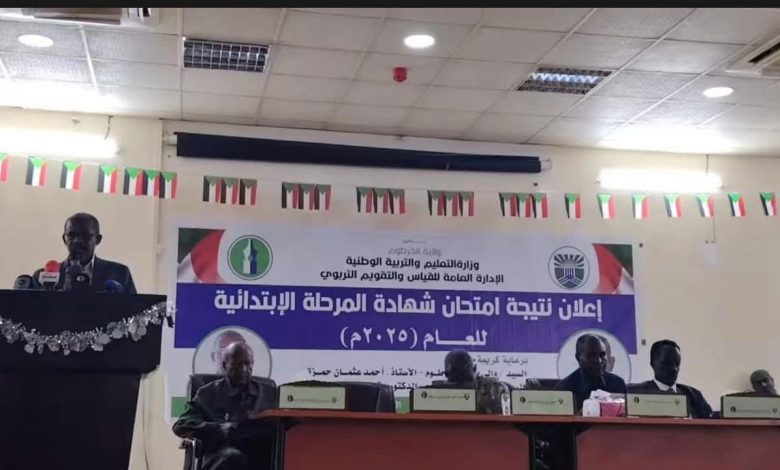أعلنت وزارة التعليم والتربية الوطنية بولاية الخرطوم اليوم نتيجة امتحان الشهادة الابتدائية للعام 2025، بحضور والي الخرطوم ووكيل الوزارة أحمد خليفة عمر وعدد من مديري الإدارات وجمع من المعلمين ووسائل الإعلام.