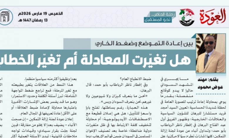 ما يجري في المشهد السوداني حالياً لا يبدو كوقائع منفصلة؛ بقدر ما يوحي بمحاولة إعادة ترتيب للصورة العامة في لحظة شديدة الحساسية؛ تعيين السيد أمجد فريد مستشاراً للبرهان للشؤون السياسية والعلاقات الخارجية؛ وظهور الفريق أول عبد الفتاح البرهان في إفطار ناظر الرباطاب بأبو حمد؛ وتداول أنباء عن عودة لجنة إزالة التمكين؛ كلها إشارات تطرح سؤالاً مركزياً: هل نحن أمام تحول حقيقي؛ أم مجرد إعادة صياغة للمشهد بأدوات مختلفة؟