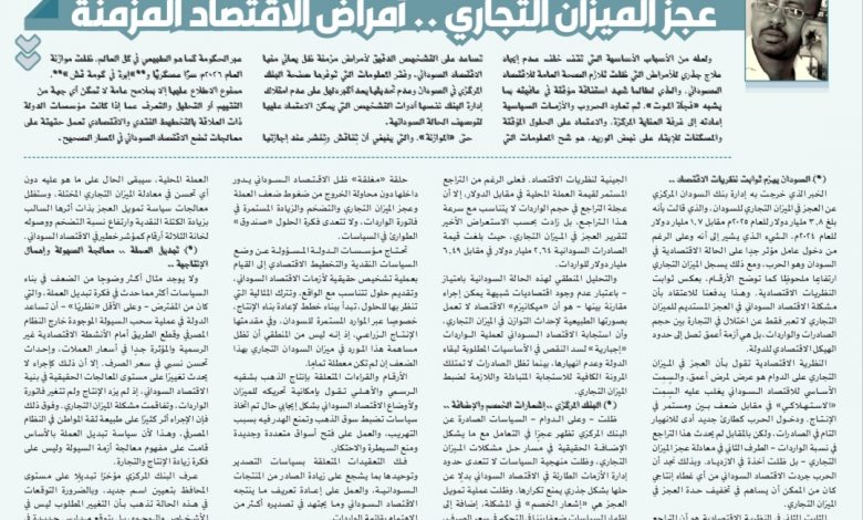 الخبر الذي خرجت به إدارة بنك السودان المركزي عن العجز في الميزان التجاري للسودان، والذي قالت بأنه بلغ 3.8 مليار دولار للعام 2025م مقابل 1.7 مليار دولار للعام 2024م، الشيء الذي يشير إلى أنه وعلى الرغم من دخول عامل مؤثر جدًا على الحالة الاقتصادية في السودان وهو الحرب، ومع ذلك يسجل الميزان التجاري ارتفاعًا ملحوظًا كما توضح الأرقام، بعكس ثوابت النظريات الاقتصادية. وهذا يدفعنا للاعتقاد بأن مشكلة الاقتصاد السوداني في العجز المستديم للميزان التجاري لا تعبر فقط عن اختلال في التجارة بين حجم الصادرات والواردات، بل هي أزمة أعمق تصل إلى حدود الهيكل الاقتصادي للدولة.