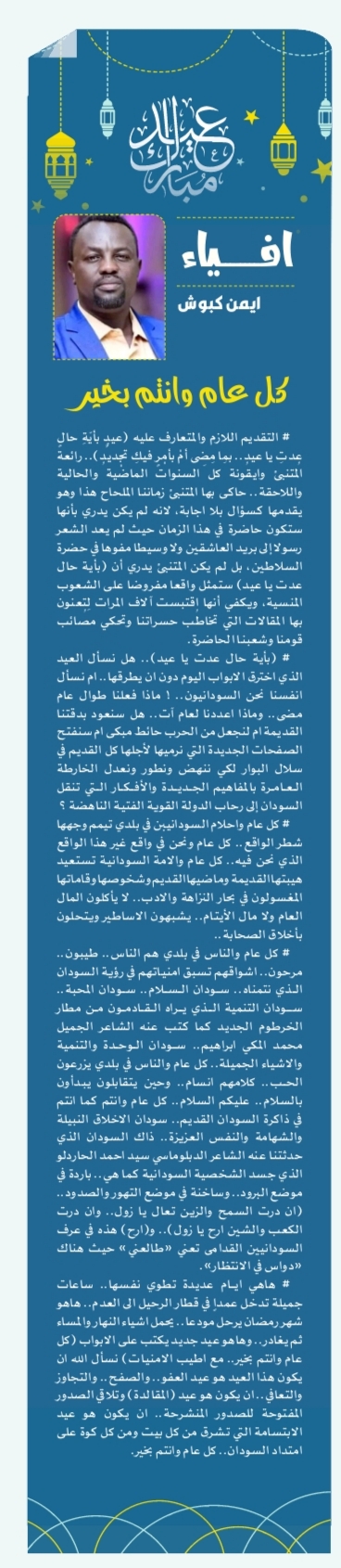 ايمن كبوش يكتب: كل عام وانتم بخير