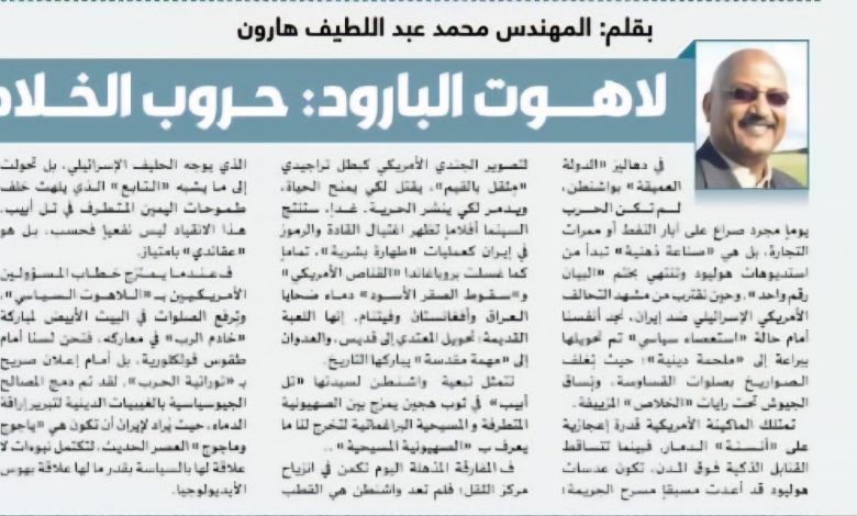 في دهاليز “الدولة العميقة” بواشنطن، لم تكن الحرب يوماً مجرد صراع على آبار النفط أو ممرات التجارة، بل هي “صناعة ذهنية” تبدأ من استديوهات هوليود وتنتهي بختم “البيان رقم واحد”. وحين نقترب من مشهد التحالف الأمريكي الإسرائيلي ضد إيران، نجد أنفسنا أمام حالة “استعصاء سياسي” تم تحويلها ببراعة إلى “ملحمة دينية”؛ حيث تُغلف الصواريخ بصلوات القساوسة، وتُساق الجيوش تحت رايات “الخلاص” المزييفة.