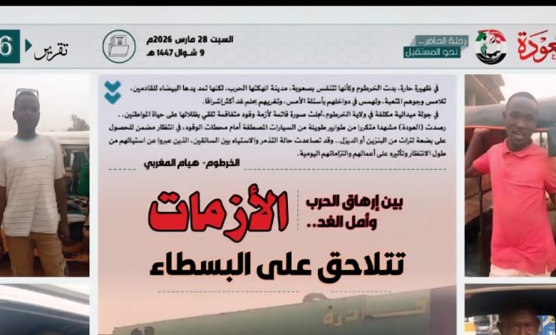 في محطة وقود تعج بالانتظار وانفاس المنتظرين تعلو وتهبط، التقت (العودة) بمعتز، سائق ركشة، اوضح ان تذبذب عمل الطلمبات بين التشغيل والتوقف اسهم في خلق أزمة حقيقية في توفر الوقود، وأضاف معتز أن هذا الوضع أدى إلى ارتفاع اسعار الوقود بصورة ملحوظة، مما أثر سلبا علي حياة المواطنين، وطالب الجهات المختصة بالتدخل العاجل لتوفير الوقود، مراعاة للظروف العامة الصعبة التي يعيشونها.