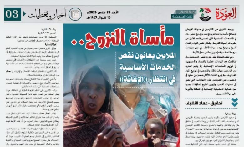 يواجه الملايين من النازحين في مدينة الأبيض أوضاعاً مأساوية تتفاقم يوماً بعد يوم، مع نقص حاد في الخدمات الأساسية التي تضمن الحد الأدنى من مقومات الحياة الكريمة. يشكل نقص المياه والغذاء تحدياً وجودياً يهدد حياة الآلاف، في ظل شهادات مروعة تصف واقعاً مريراً يعكس عمق الأزمة.
