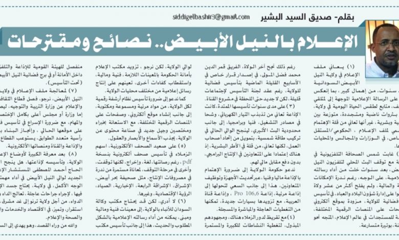 الإعلام بالنيل الأبيض.. نصائح ومقترحات