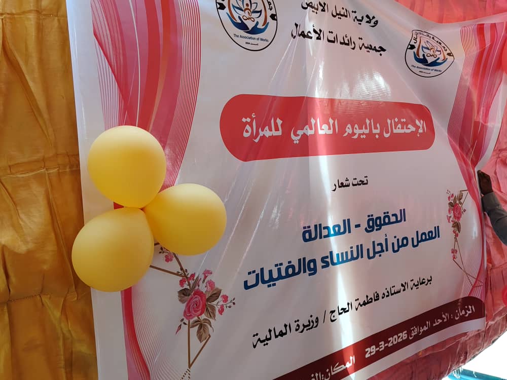 “الحقوق، العدالة، العمل من أجل النساء والفتيات” بهذه الكلمات، كانت جمعية رائدات الأعمال بولاية النيل الأييض السودانية، توزع بطاقة دعوة لطيف واسع من مجتمع الولاية، لتحتفي عبرها بذكرى يوم المرأة العالمي، الثامن والعشرين من مارس 2026م ، كما ظل يحييه الناس في أغلبية دول العالم، لمناسبة تذكر المجتمع بحقوق المرأة، ونضالاتها، سلما وحربا.