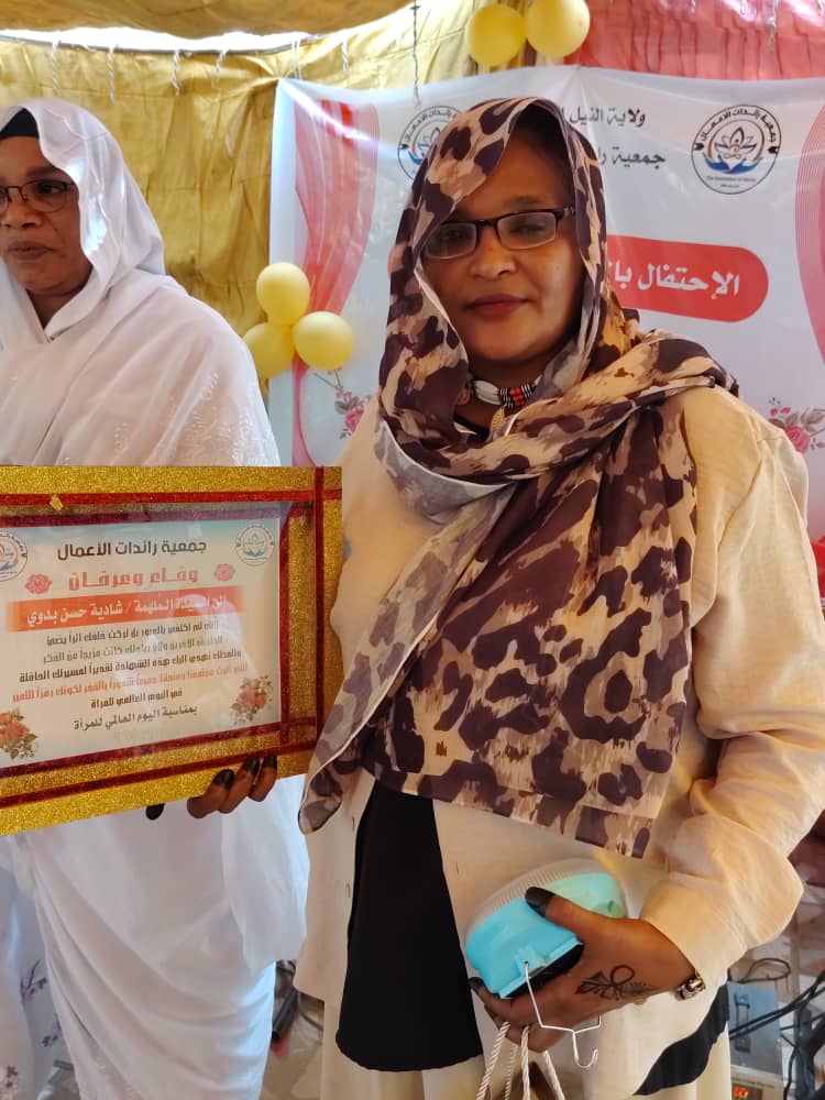 وفي ختام الاحتفال أشادت الأستاذة فاطمة الحاج الطيب بدور المرأة السودانية مثمنة جهود جمعية رائدات الأعمال في دعم وتمكين النساء.
