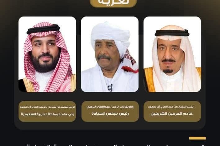 الخرطوم –بعث رئيس مجلس السيادة الانتقالي، الفريق أول الركن عبد الفتاح البرهان، برقية تعزية إلى خادم الحرمين الشريفين الملك سلمان بن عبدالعزيز آل سعود، وولي عهده الأمير محمد بن سلمان، في وفاة الأميرة الجوهرة بنت فيصل بن عبدالله آل عبد الرحمن آل سعود، التي انتقلت إلى جوار ربها.