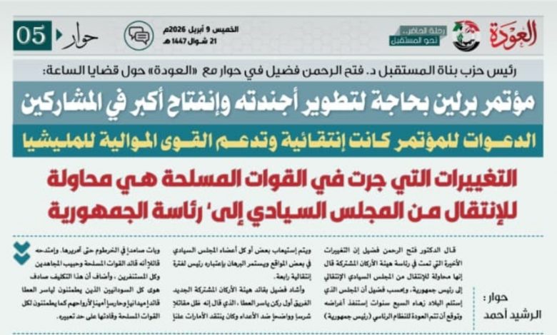 رئيس حزب بناة المستقبل الدكتور فتح الرحمن فضيل في حوار مع “العودة” حول قضايا الساعة: