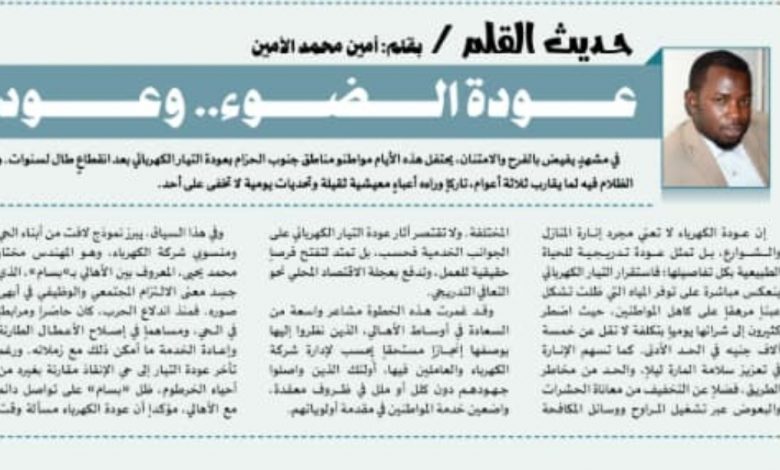 ​أمين محمد يكتب : عودة الضوء.. وعودة الحياة