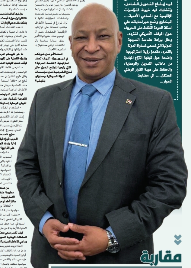في هذا الحوار الاستثنائي، نفتح الملفات الشائكة فوق طاولة الدبلوماسية السودانية مع واحد من أبرز خبراء العلاقات الدولية، السفير الدكتور معاوية البخاري .الدبلوماسي والنائب السابق لرئيس بعثة السودان في نيويورك والأكاديمي المعروف… يأتي هذا اللقاء في توقيت مفصلي يتسارع فيه إيقاع التدويل الشامل، وتتشابك فيه خيوط المؤامرات الإقليمية مع المساعي الأممية…. البخاري وضع عبر احاباته علي اسئلة العودة النقاط على الحروف حول الموقف الأمريكي المتردد، وحلل ببراعة هندسة السردية الدولية التي تسعى لمساواة الدولة بالتمرد، مقدماً رؤية استراتيجية واضحة حول كيفية انتزاع المبادرة من مخالب التدويل والوصاية، والحفاظ على هيبة القرار الوطني المستقل…. الي مضابط الحوار…