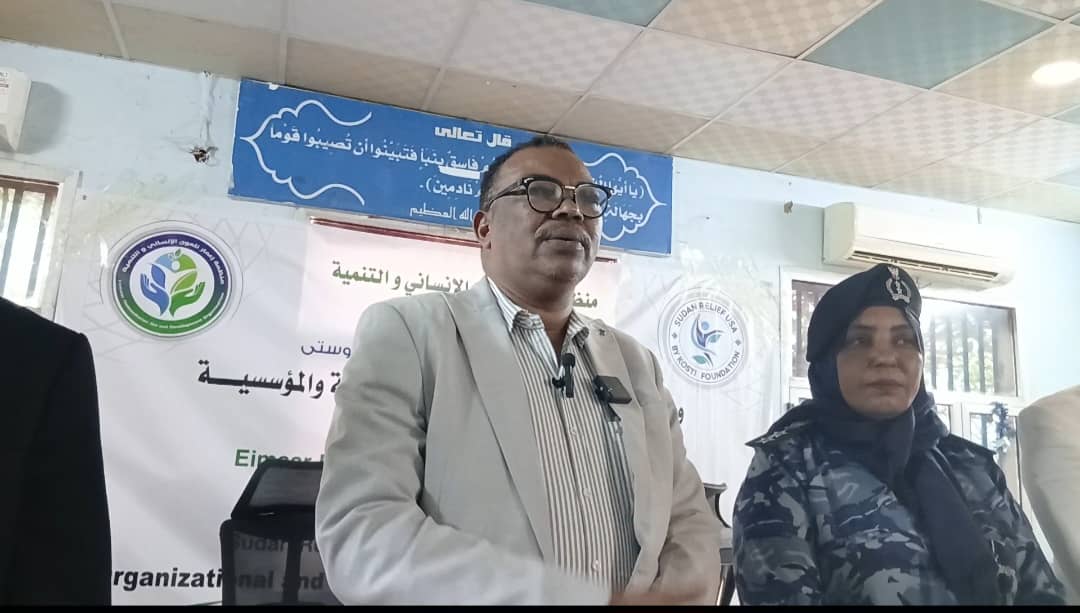 على الطريق الرابط بين مدينتي كوستي وربك بولاية النيل الأبيض، وعلى مقربة من مدخل جسر كوستي ربك، الذي أسس في فترة حكم الرئيس جعفر نميري (رحمة الله عليه)، هكذا تبدو رئاسة شرطة النيل الأبيض، بلوان أزرق يسر الناظرين، ويلفت الإنتباه، لمكان إتخذته منظمة إعمار للعون الإنساني والتنمية، موقعا لإقامة ورشة لبناء القدرات لمنسوبيها.