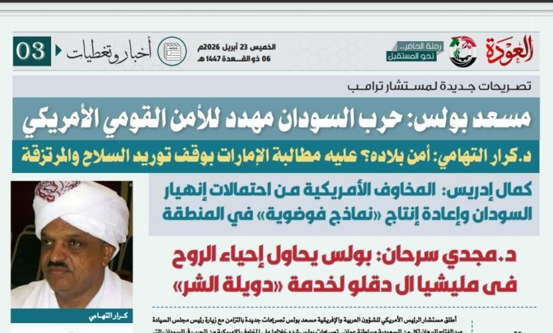 وتحدثت (العودة) للسفير د.كرار التهامي الذي قلل من أهمية تصريح المستشار بولس وقال: في تقديري هو تصريح نمطي يشبه النص الذي كان يتم استخدامه في الماضي لتجديد العقوبات على السودان، حيث يشير القرار إلى “خطر السودان على الأمن القومي الأمريكي” كل مرة، وهو محض إدعاء لتمرير العقوبات لدى المشرعين وتبريرها للرأي العام أو الجهات التي قد تتساءل، في مناخ الفصل بين السلطات في أمريكا.