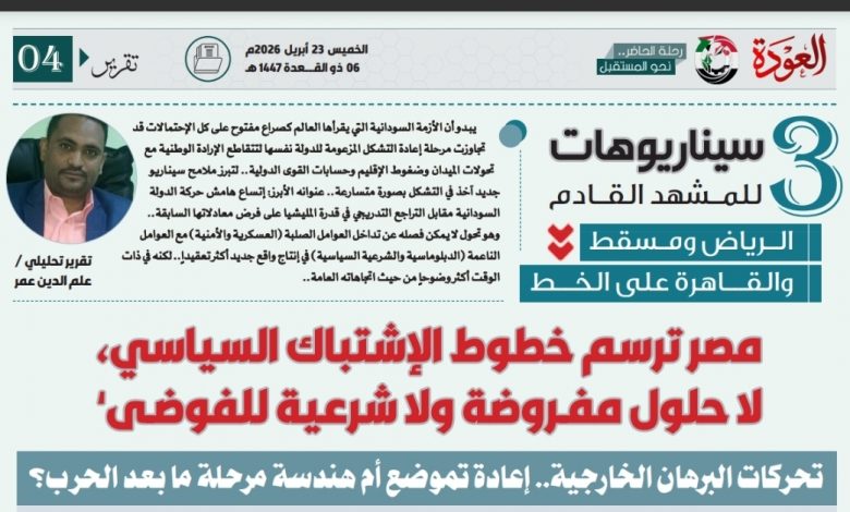 التعمق في هذا السيناريو يكشف أنه لا يتعلق فقط بالحسم العسكري.. بل بإعادة هندسة البيئة الاستراتيجية بالكامل.. فالحسم التدريجي يمنح الدولة زمناً كافياً لإعادة ترتيب أوراقها الداخلية.. وبناء تحالفات أكثر صلابة.. وتفكيك شبكات الدعم اللوجستي والمالي التي تغذي الصراع.. كما يتيح لها إعادة تعريف خطابها السياسي على أساس “الدولة المستعيدة” لا “الدولة المتنازعة”..