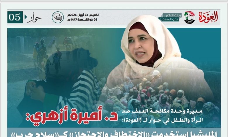 هذه الأرقام -رغم قسوتها- ليست سوى “قمة جبل الجليد”، فالفجوة بين الواقع المرير وما يتم تدوينه في السجلات الرسمية تزداد اتساعاً بفعل الترهيب الممنهج والوصمة الاجتماعية. في هذا الحوار الخاص لصحيفة (العودة)، تفتح الدكتورة أميرة أزهري فضل الله، مديرة وحدة مكافحة العنف ضد المرأة والطفل، ملفات الانتهاكات المسكوت عنها، وتكشف عن معاناة النساء داخل مراكز الإيواء، وتدق ناقوس الخطر حول غياب المساءلة الدولية تجاه جرائم الاغتصاب والاختطاف التي طالت حتى القاصرات.