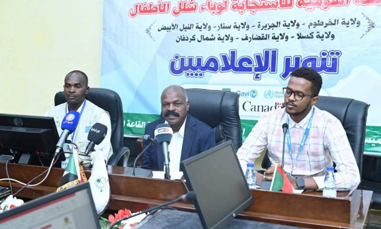 أقامت وزارة الصحة الاتحادية ، الإدارة العامة للرعاية الصحية الأساسية، إدارة تعزيز الصحة، برنامج التحصين الموسع ،بالقاعة الكبرى بالوزارة ،لقاءً تنويرياً للإعلاميين حول الحملة القومية للاستجابة لوباء شلل الأطفال، والتي تنطلق يوم الاثنين 27 أبريل 2026 وتستمر لمدة أربعة أيام، مستهدفة سبع ولايات هي: الخرطوم، الجزيرة، سنار، النيل الأبيض، كسلا، القضارف، وشمال كردفان. وتستهدف الحملة الأطفال من عمر يوم حتى خمس سنوات عبر التطعيم من منزل إلى منزل، بهدف تعزيز المناعة ضد فيروس شلل الأطفال المتحور وضمان سلامة الأطفال.
