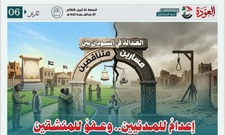 و بين مسارٍ يفتح أبواب العودة أمام من انشقوا عن ميليشيا الدعم السريع ثم جرى استيعابهم داخل المؤسسة العسكرية، ومسارٍ قضائي يمضي في محاكمة مدنيين بتهم “التعاون” وصولًا إلى الإعدام أو السجن المؤبد، تتكشف ملامح مشهد عدلي شديد التعقيد في السودان.