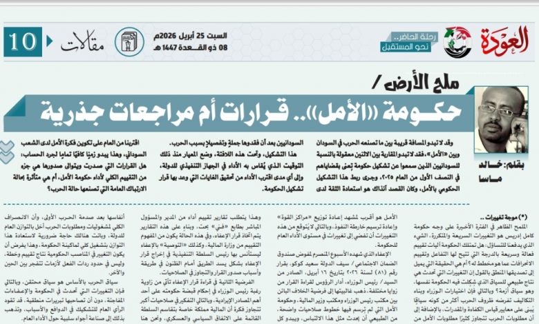 اقتربنا من العام على تكوين فكرة الأمل لدى الشعب السوداني، وهذا يبدو زمنًا كافيًا تمامًا لجرد الحساب: هل القرارات التي صدرت ويتوالى صدورها هي جزء من التقييم الكلي لأداء حكومة الأمل، أم هي متأثرة بحالة الارتباك العامة التي تصنعها حالة الحرب؟