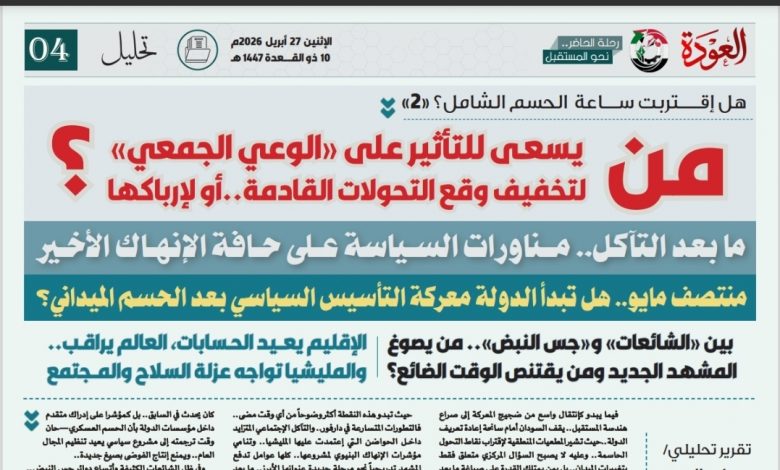 غير أن أهمية هذه المرحلة لا تنبع فقط من تراجع مشروع مسلح فقد كثيراً من روافعه.. بل من تزامن ذلك مع دعوات الدولة إلى إطلاق عملية سياسية منتصف مايو المقبل.. وهي دعوة لا يمكن قراءتها كمحاولة لكسب الوقت غير المتوفر كما كان يحدث في السابق.. بل كمؤشرا على إدراك متقدم داخل مؤسسات الدولة بأن الحسم العسكري—حان وقت ترجمته إلى مشروع سياسي يعيد تنظيم المجال العام.. ويمنع إنتاج الفوضى بصيغ جديدة..