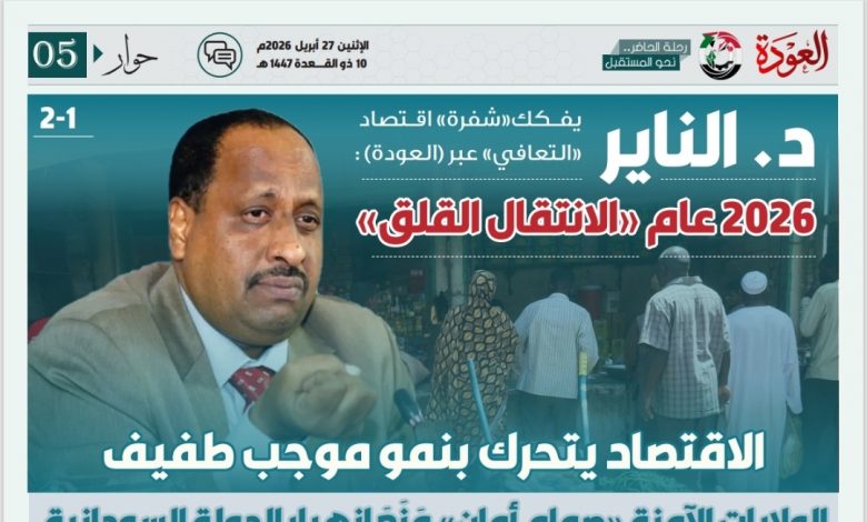 يرسم الخبير الاقتصادي الدكتور محمد الناير في هذا الحوار ملامح المشهد الاقتصادي السوداني لعام 2026 عبر لغة الأرقام والوقائع الميدانية. ويتناول حواره مع العودة أثر ارتفاع أسعار النفط عالمياً وتجاوز الديون الخارجية حاجز 65 مليار دولار، مع التركيز على استراتيجيات بديلة لكسر العزلة الدولية. ويطرح الناير عبر “العودة ” رؤية فنية جريئة لتوظيف موارد السودان، ومنها 200 مليون فدان صالحة للزراعة، كصمام أمان لتحقيق استقرار مستدام في مرحلة ما بعد الحرب…..