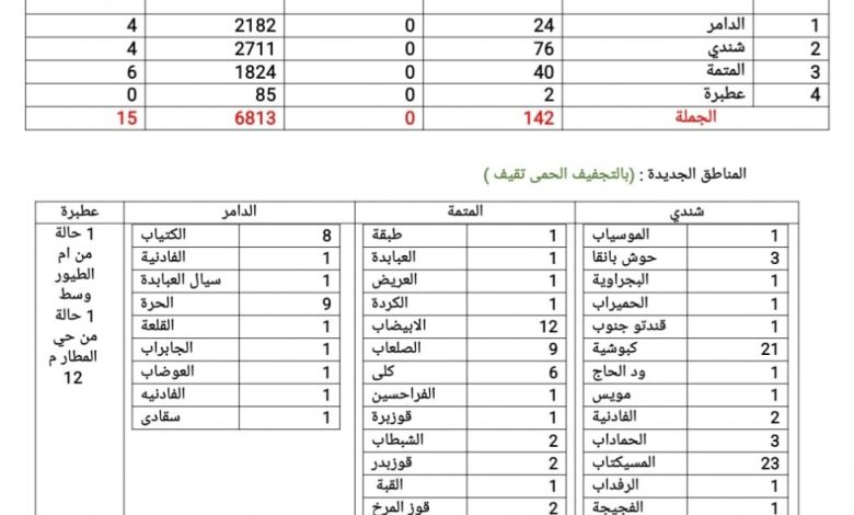وتشير التفاصيل الميدانية للمناطق الجديدة المتأثرة إلى توسع في رقعة المرض؛ حيث رصدت شندي حالات في 24 منطقة أبرزها “المسيكتاب” (23 حالة) و”كبوشية” (21 حالة)، فيما تركزت إصابات المتمة في منطقة “الابيضاب” بواقع 12 حالة، وسجلت الدامر أعلى إصاباتها في “الحرة” بواقع 9 حالات. وتأتي هذه التطورات الوبائية في ظل نداءات مستمرة من وزارة الصحة للمواطنين بضرورة الالتزام بالإجراءات الوقائية، وتكثيف عمليات تجفيف المياه الراكدة داخل المنازل وفي الساحات العامة لقطع الطريق أمام ناقل المرض ومنع خروج الوضع الوبائي عن السيطرة.