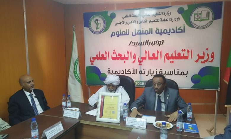 أشاد بروفيسور أحمد مضوي موسى، وزير التعليم العالي والبحث العلمي، بالمستوى المتقدم الذي بلغته أكاديمية المنهل للعلوم، وذلك خلال زيارة تفقدية للأكاديمية، أعرب خلالها عن إعجابه بالبنية التحتية الحديثة والتجهيزات المتطورة والبرامج الأكاديمية التي تقدمها.