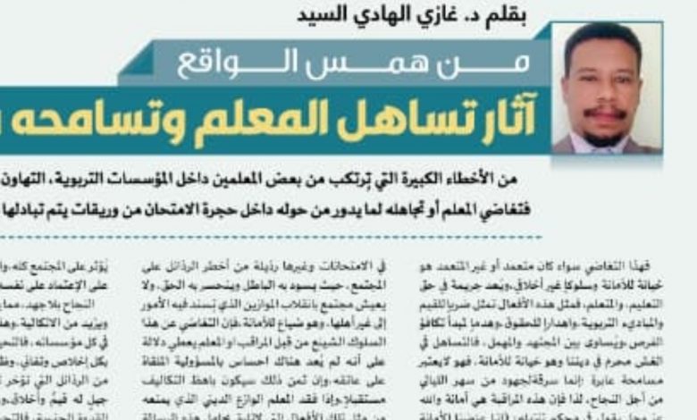 من همس الواقع : آثار تساهل المعلم وتسامحه في مراقبة الإمتحانات