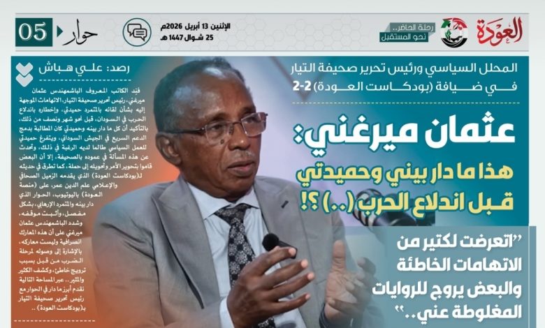 فنّد الكاتب المعروف الباشمهندس عثمان ميرغني، رئيس تحرير صحيفة التيار، الاتهامات الموجهة إليه بشأن لقائه بالمتمرد حميدتي، وإخطاره باندلاع الحرب في السودان، قبل نحو شهر ونصف من ذلك، بالتأكيد أن كل ما دار بينه وحميدتي كان المطالبة بدمج الدعم السريع في الجيش السوداني، ويتفرغ حميدتي للعمل السياسي طالما لديه الرغبة في ذلك، وتحدث عن هذه المسألة في عموده بالصحيفة، إلا أن البعض قاموا بتحوير الأمر وتحويله إلى حملة، كما تطرق في حديثه لـ(بودكاست العودة) الذي يقدمه الزميل الصحافي والإعلامي علم الدين عمر، على (منصة العودة) باليوتيوب، الحوار الذي دار بينه والمتمرد الإرهابي، بشكل مفصل، وأثبت موقفه، وشدد الباشمهندس عثمان ميرغني على أن هذه المعارك انصرافية وليست معاركه، بالإشارة إلى وصوله لمرحلة الضرب من قبل بسبب ترويج خاطئ، وكشف الكثير والمثير .. عبر المساحة التالية نقدم أبرز ما دار في الحوار مع رئيس تحرير صحيفة التيار بـ(بودكاست العودة) ..