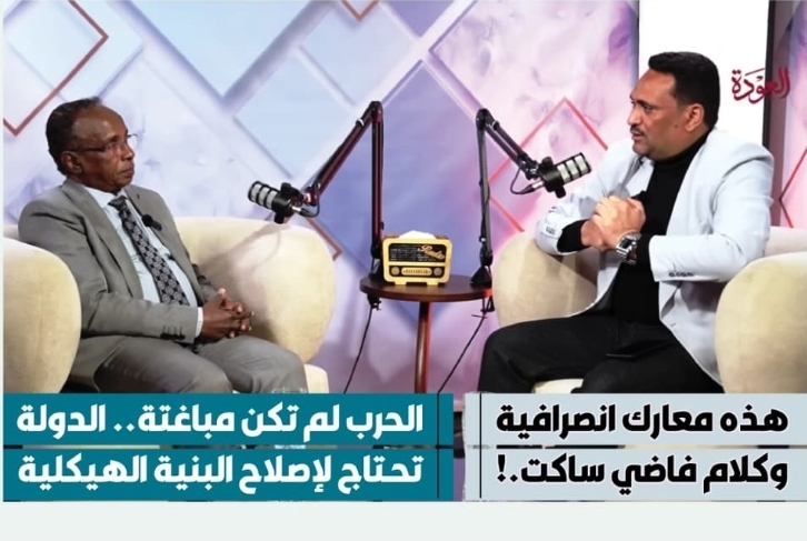 ولا ح تقدر بالصورة الموجودة الآن ما ح تقدر، محتاج أصلح البنية الهيكلية بتاعة الدولة عشان تقدر تقوم بالعمل ده عشان كده أنا بركز عليها كتير جداً، أنا عملت كتاب اسمو السودان الجمهورية الثانية بتكلم فيهو عن المسائل دي، نحن محتاجين نعيد مفاهيم الدولة بصورة كاملة، عشان تقدر تعيد بناء مفاهيم الدولة الخطوط الأولى الانت محتاجها نفسك القدرة على تخطي المسلمات نحن بالمناسبة بنعيش في دولة مُسلَّمات قوالب جاهزة في كل شيء، حتى معطيات الخطاب هو قوالبو جاهزة لكن نحن لازم نكسر المسلَّمات دي عشان نحن نقدر نصنع دولة قادرة فعلاً إنها تستفيد من كل المعطيات الموجودة دي وتقدر في النهاية تطلع منها الانت أطلقت عليها مشروع وطني أنا ما بحب الكلمة دي عموماً لكن خليني جُزافاً استخدمها نصنع مشروع وطني من خلاصة تفكير الشعب السوداني كلو، ده بيحتاج إنو اتخطى المسلَّمات الموجودة الآن، يعني أنا محتاج لكتير جداً من التغييرات الهيكلية في الدولة، عشان كده قلت ليك حُلُم العودة للسودان نحن كإعلام عشان نخلي المسؤولية علينا نزرع في ذهن أي مواطن سوداني انت عائد عشان تبني دولة جديدة، مش عشان تصلح الكهرباء ولا المجاري، الدولة دي الجزء الأهم فيها ما الجزء المباني الانت شايفها قدامك الجزء المعنوي للدولة نفسه التشريعات وجود الدولة كإحساس الدولة نفسها الخدمة المدنية، انت بتحتاج تعيد بناء المسائل دي كلها بصورة تستوعب قدرة الإنسان في إنو أحلامو دي تتحقق في سياق هذه الدولة، والأشياء دي ما مجرد كلام تنظير، هي في أشياء عملية ممكن نعملها واحد اتنين تلاتة أربعة، نصنع الحلم ده، في النهاية البحصل ده حتى في المشاكل السياسية؛ المشاكلة السياسية دي ناتجة من شنو؟، ناتجة من كلمة واحدة في اللغة العربية استحواذ كل واحد عايز يستحوذ على السلطة لأنو بالاستحواذ على السلطة انت تستحوذ على الثروة تستحوذ على الموارد تستحوذ على المصير تستحوذ على القرار، ولذلك بينشأ الصراع حتى لو جات بالانتخابات أول ما تمسك السلطة التاني عاوز ينتزع منك السلطة، حتى الأربعة سنوات بتاعة الانتخابات ما ح ينتظرها، عايز ينتزع منك السلطة عشان الاستحواذ، لكن أنا لو خلقت شكل للسلطة بكون الحاكم أو الحكومة ككل في مختلف مستوياتها هي ما مهيمنة على كل شيء، هي فقط منظِمة، مُنظِمة زي حركة السير في الشوارع، منظِمة للأفكار منظمة لحركة المواطن منظمة للمجتمع، بتلقى في النهاية، أي إنسان بحس إنو هو حتى لو ما في حكومة هو قادر يحكم بإنو هو مساهم ومشارك، لكن للأسف ده ما موجود ..