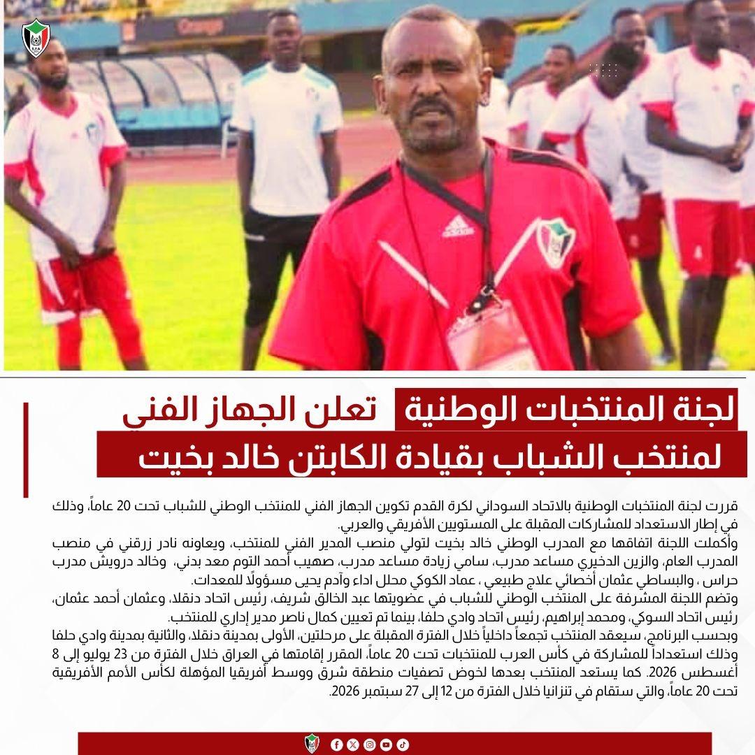 قررت لجنة المنتخبات الوطنية بالاتحاد السوداني لكرة القدم تكوين الجهاز الفني للمنتخب الوطني للشباب تحت 20 عاماً، وذلك في إطار الاستعداد للمشاركات المقبلة على المستويين الأفريقي والعربي.
