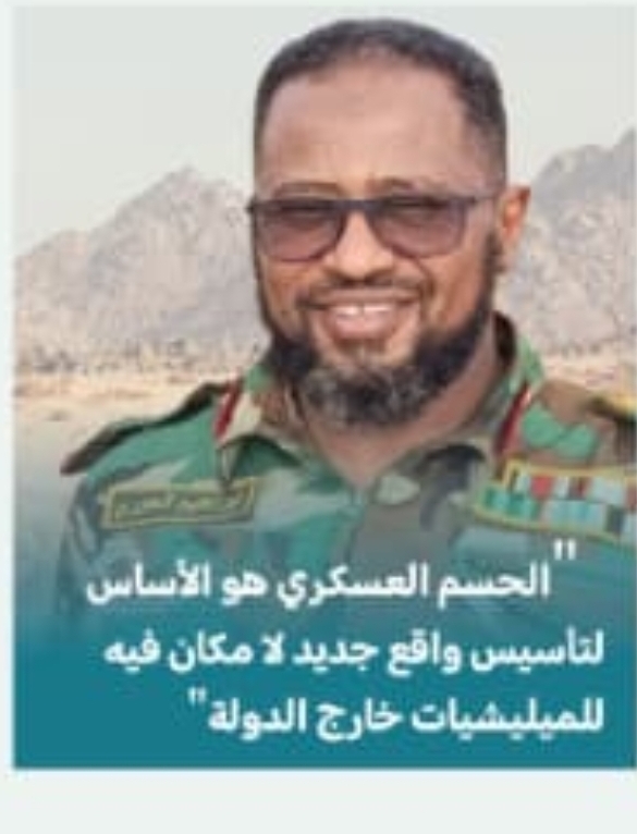 = رسالتي أن النصر قريب جداً؛ السودان سيعود آمناً مستقراً، والقوات المسلحة هي صمام أمان هذا البلد. الرحمة للشهداء الأبرار وعاجل الشفاء للجرحى، وأبشروا فإن فجر التحرير الكامل من دنس التمرد والمرتزقة قد دنا.