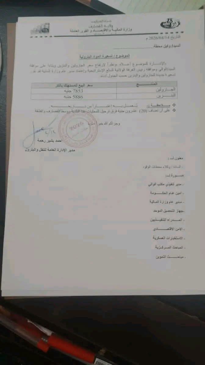 أعلنت وزارة المالية والاقتصاد والقوى العاملة بولاية القضارف عن زيادة جديدة في أسعار المواد البترولية، وذلك تماشياً مع ارتفاع أسعار الجازولين والبنزين وتوجيهات الغرفة الولائية للسلع الاستراتيجية. وبموجب القرار الصادر عن الإدارة العامة للنقل والبترول بتاريخ 14 أبريل 2026، حُدد سعر لتر الجازولين للمستهلك بـ 7853 جنيهاً، فيما حُدد سعر لتر البنزين بـ 5886 جنيهاً، مع إضافة مبلغ 20 جنيهاً كفرق ترحيل للمحليات الواقعة خارج نطاق بلدية القضارف ووسطها. ووجهت الوزارة كافة وكلاء محطات الوقود والجهات الرقابية والأمنية بوضع القرار موضع التنفيذ الفوري لضمان استقرار الإمداد البترولي بالولاية