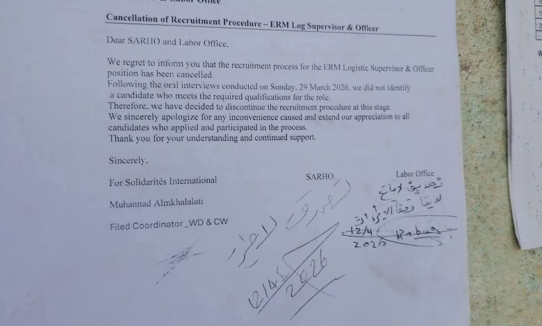 في واقعة أثارت استغراباً واسعاً في أوساط الباحثين عن عمل، أعلنت منظمة “تضامن الدولية” (Solidarités International) عن إلغاء عملية التوظيف لوظائف لوجستية حيوية، بعد فشل جميع المتقدمين في اجتياز المقابلات الشفهية واستيفاء المعايير المطلوبة.
